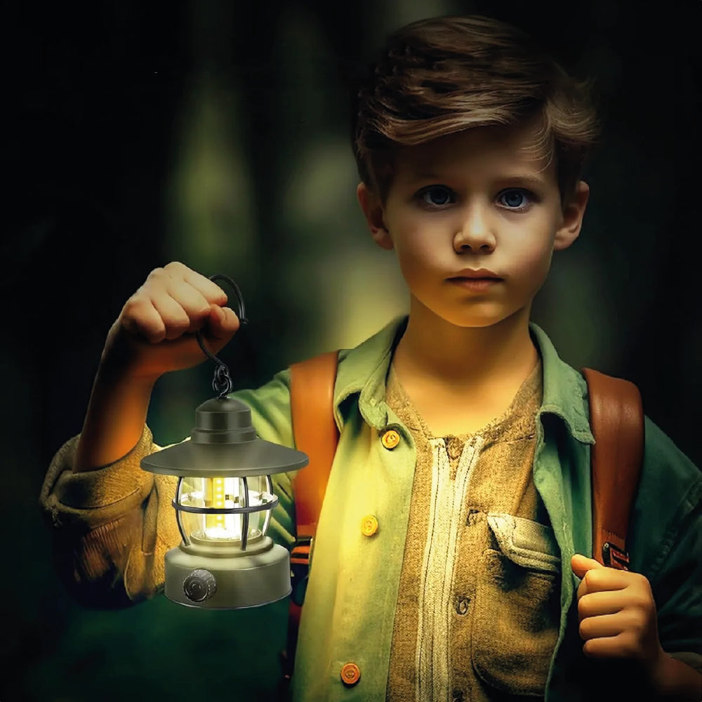 Esta no es una simple lámpara, es la prueba de que no todos están hechos para la vida al aire libre. Con su diseño vintage, ilumina cualquier campamento, fogata o incluso tu terraza cuando quieres darle un aire rústico.