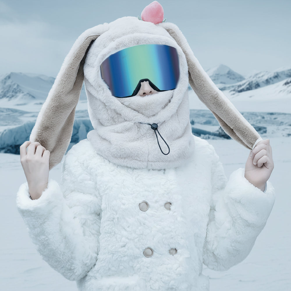Pasamontañas térmico diseño conejo, en mezcla de cachemira granulada, algodón y poliéster. Su tejido es suave, cálido y resistente al viento y al frío. Talla L ajustable: cómodo, respirable y flexible para deslizar en ski o snowboard con estilo.